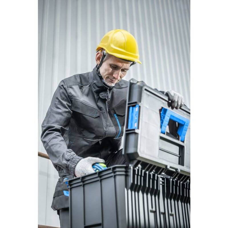 • ABS-Schalenmaterial: Die Schale des Baustellen-Helms besteht aus ABS-Kunststoff, der auch bei niedrigen Temperaturen stoßfest ist und eine hohe Härte sowie Kratzfestigkeit aufweist.