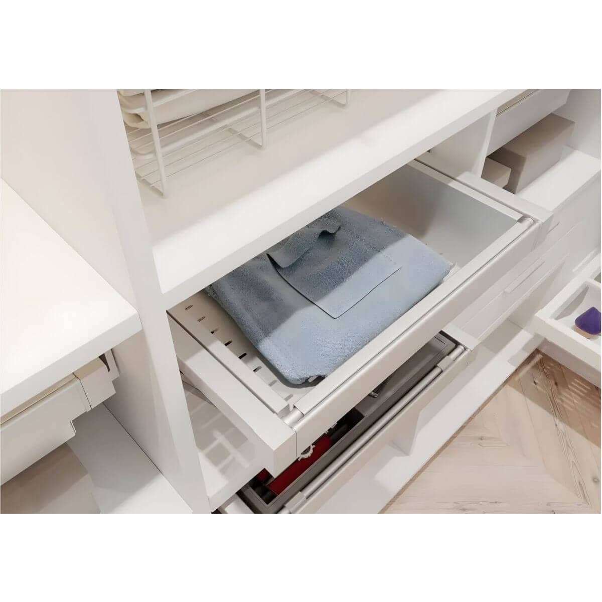The ELITE pull-out basket from Gedotec is the perfect solution for making any wardrobe functional and well-organised. With its well-thought-out design, it allows for quick and easy organisation of storage space, ensuring that clothes, accessories or other items are always stored safely and within easy reach. The ELITE pull-out basket is available in four different sizes and, thanks to its adjustable frame, can be flexibly adapted to the width of your wardrobe. The innovative silent-closing technology ensures quiet closing, whilst the full-extension function guarantees convenient access to the entire contents of the basket. The package includes two bottom runners, two runner protectors, two basket brackets, the adjustable frame with ±58 mm adjustment range, the basket itself, and all necessary screws. You can choose the ELITE pull-out basket with a wire basket, metal basket or rattan basket, allowing you to adapt it perfectly to your interior and needs. With the Gedotec ELITE pull-out basket, you combine maximum functionality with high-quality workmanship for a tidy and well-organised wardrobe.