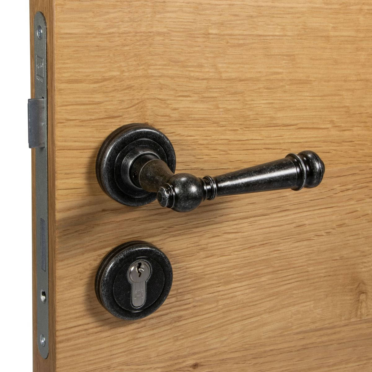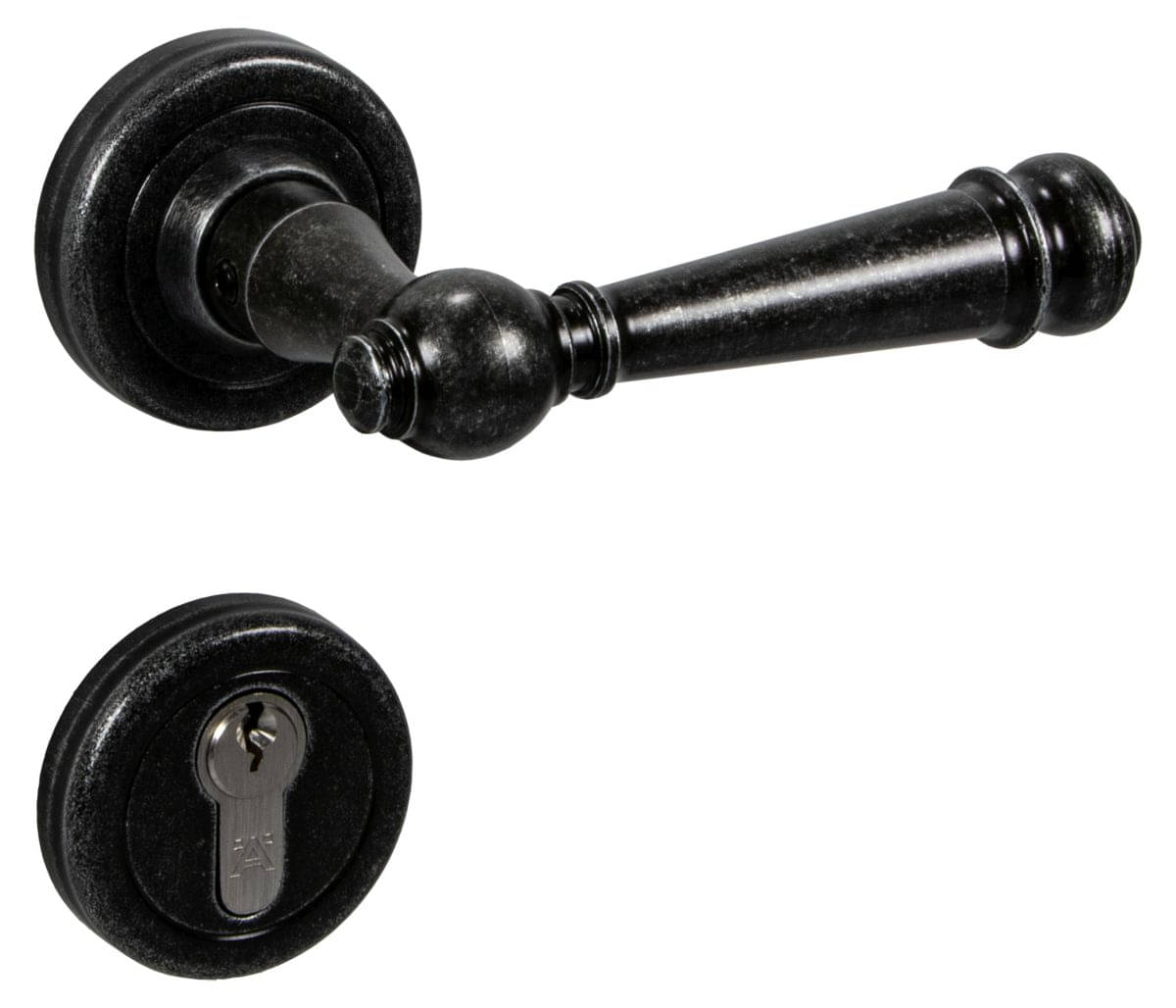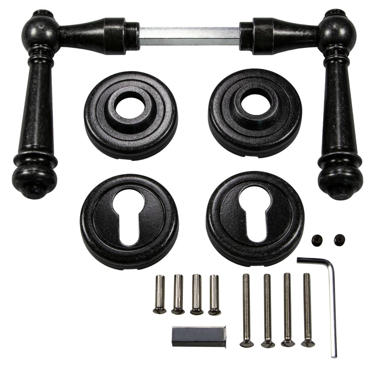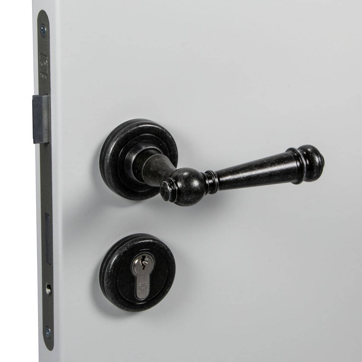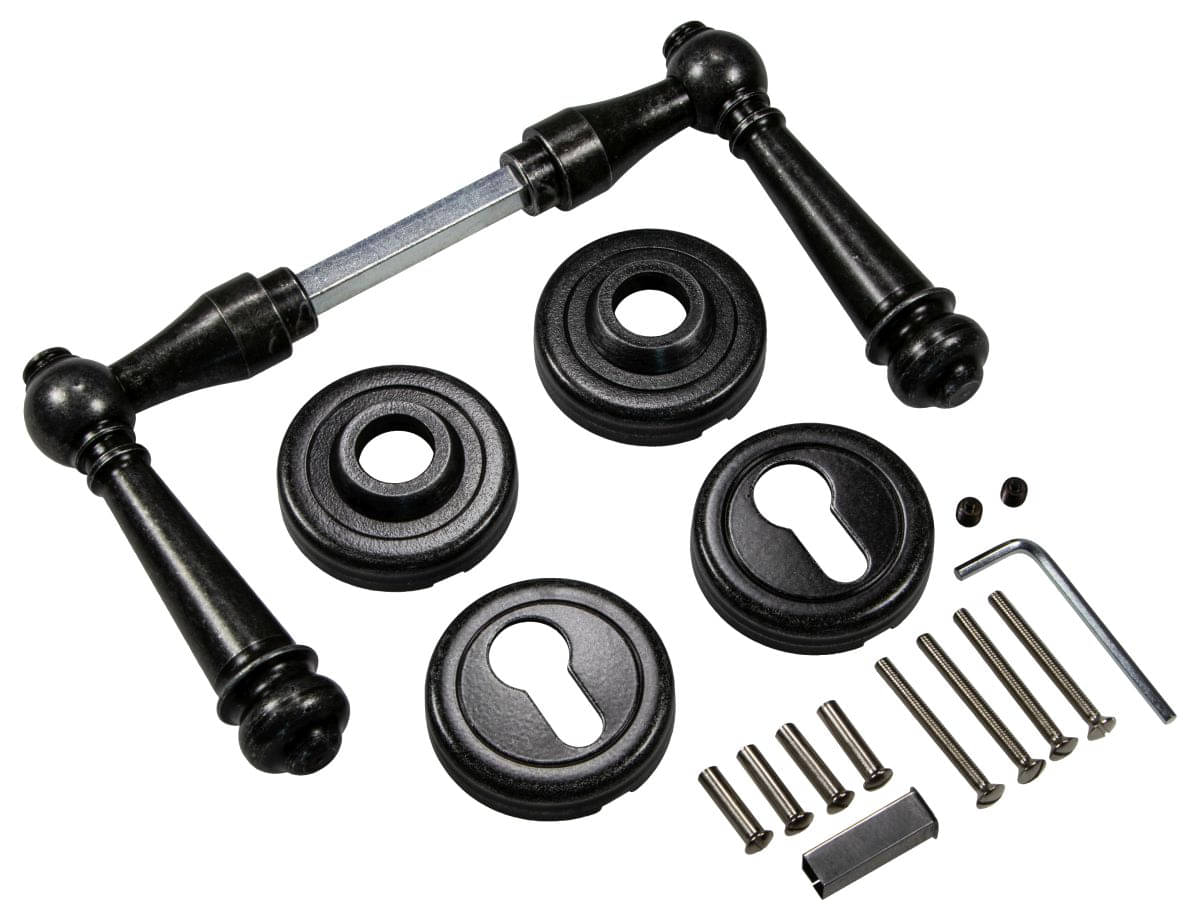 Lienbacher door handle set SILVRETTA-R made of black antique wrought iron