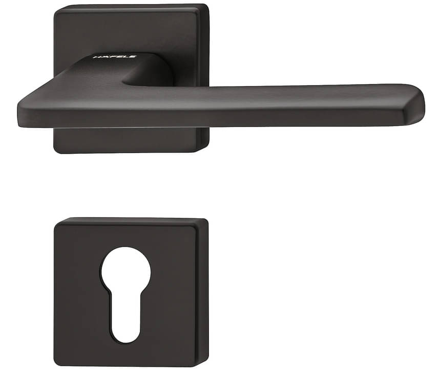 High-quality Häfele handle set LDH 3350 made of stainless brass with an elegant design surface and square rosette. This modern door handle convinces with exquisite and timeless design and high stability. The integrated return spring ensures a straight handle position and provides additional support for the door lock. Particularly clean and flawless workmanship for long durability of the door handles, the smooth surface is easy to clean and fingerprints are hardly visible.