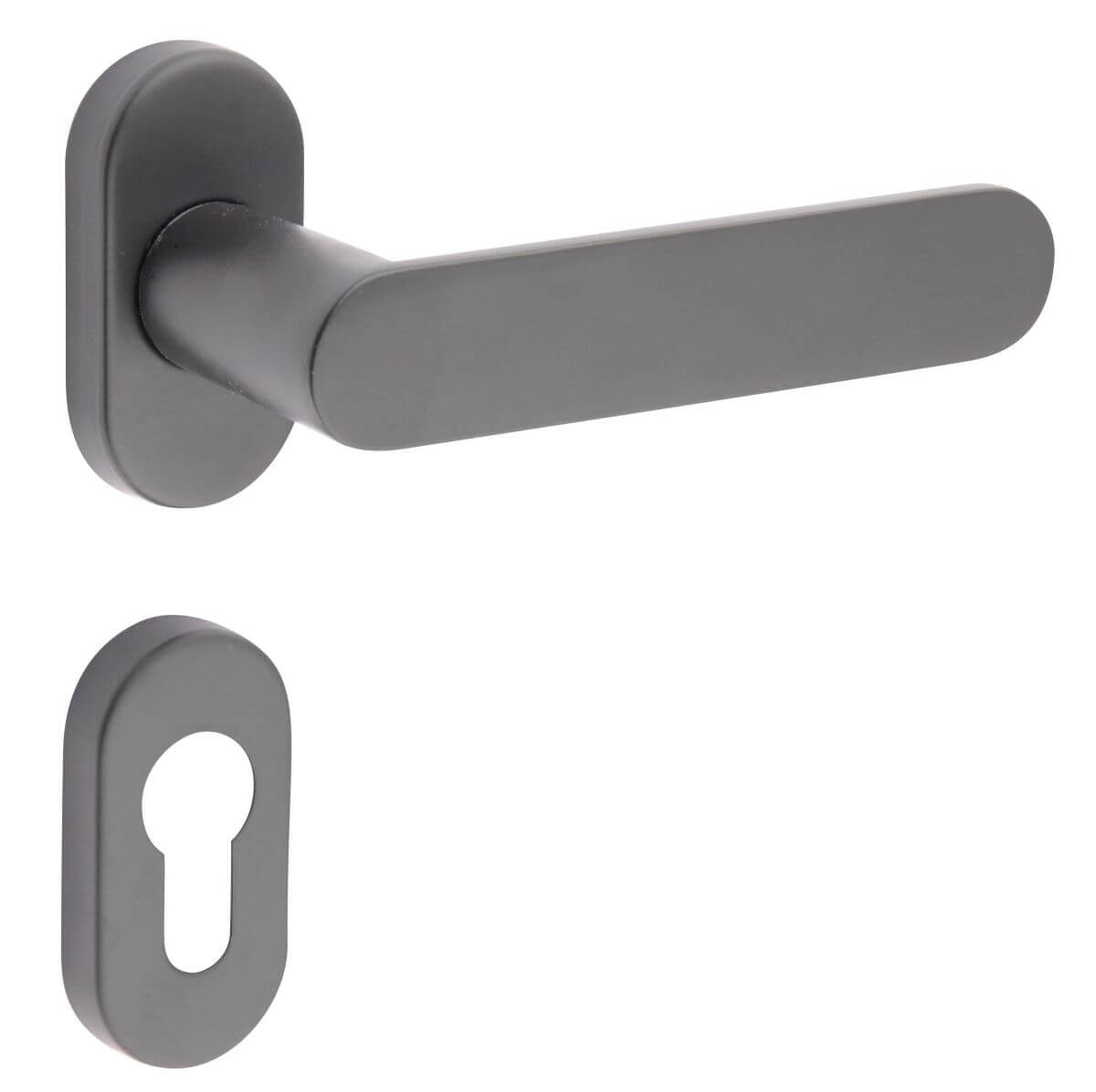 With rosette dimensions of 61x31 mm, the lever handle set blends harmoniously into any door design and adds the finishing touch to your home.
