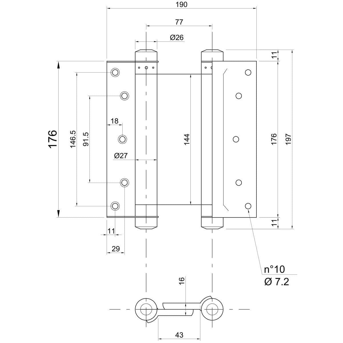 Manufactured in Italy, this swing door hinge stands for high-quality workmanship, precise functionality and a long service life. It is the perfect choice for workshops, catering, industry, storage areas or private use wherever reliable and convenient swing door solutions are required.