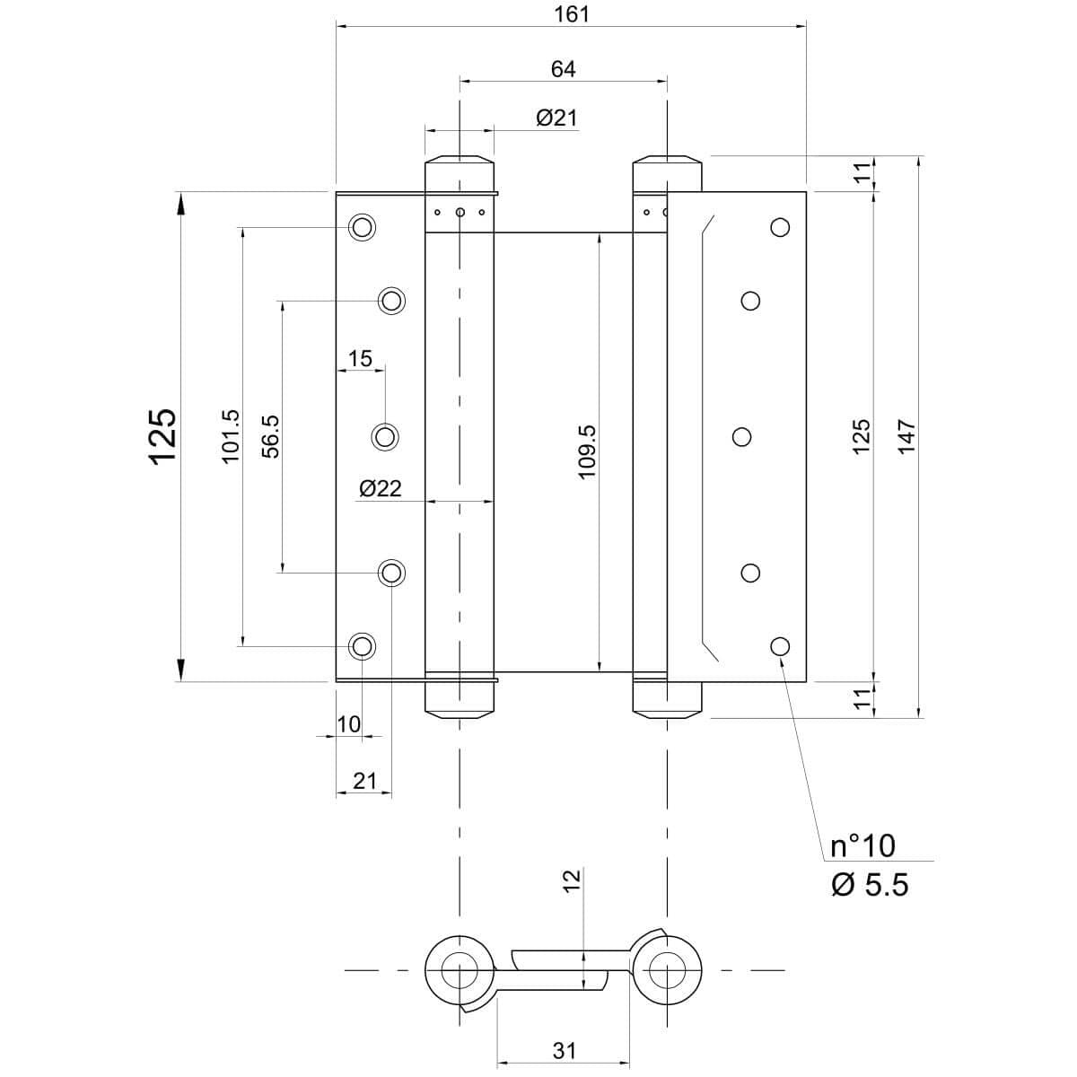 The swing door hinges are suitable for use on wooden frames, half and full doors and impress with their robust construction and durable quality. For higher load-bearing capacity, several pairs of hinges can be used without any problems, whereby correct vertical spacing, precise alignment and professional adjustment should be ensured. The closing force can be individually adjusted using the tension pin, so that the door behaviour can be optimally adapted to the respective application.