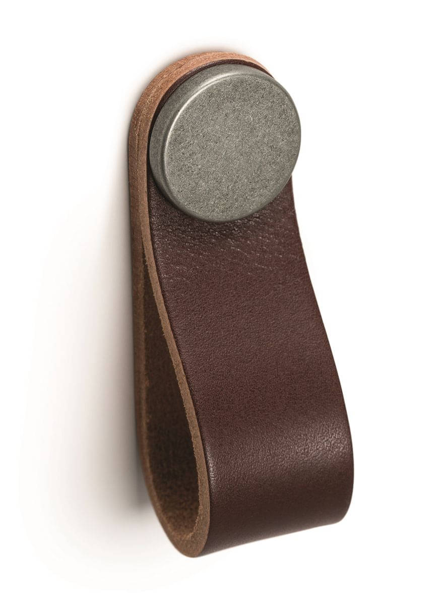 The Flex handle made of leather adds a warm, organic touch to any piece of furniture it is attached to. There are various sizes available, allowing for use on decorative furniture in general, especially in bedrooms, dressing areas, and as part of additional furniture. It is made of highest quality Spanish leather, and the knobs are made of Zamak.