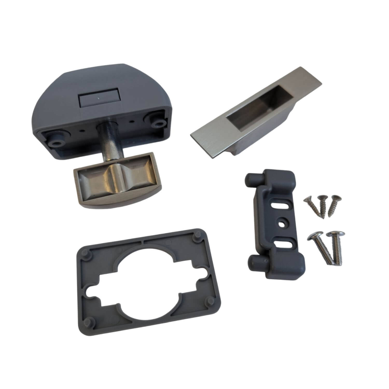 Secure your furniture and doors reliably with the high-quality screw-on lock LONG LATCH from Siso. This practical push lock with push-button locking mechanism is perfect for use in caravans, motorhomes, campers, boats and also in the household. For wood thicknesses of 12 to 16 mm, it offers a stable and secure solution for cabinets, flaps and drawers.