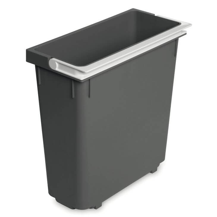 Estos cubos de basura de alta calidad hechos de plástico color antracita con asa blanca son perfectos como cubos de repuesto para el sistema de separación de residuos de Häfele CYCLE. Gracias a su diseño bien pensado, los cubos también se pueden usar independientemente del sistema.