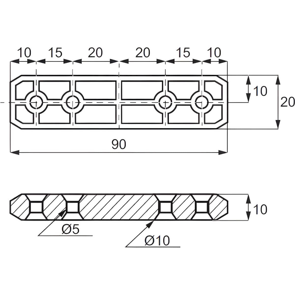 Estabilizador de paneles Siso para CLICK 90 x 20 x 10 mm