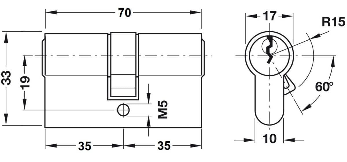 Con el cilindro doble Häfele PREMIUM puede confiar en una seguridad y calidad de primera clase para su hogar. Este cilindro de cierre de alta calidad fabricado en latón con perfil estándar ofrece una solución fiable para sus necesidades de seguridad y mide 33 mm de altura, lo que permite un ajuste y una aplicación óptimos en distintos tipos de puertas.
