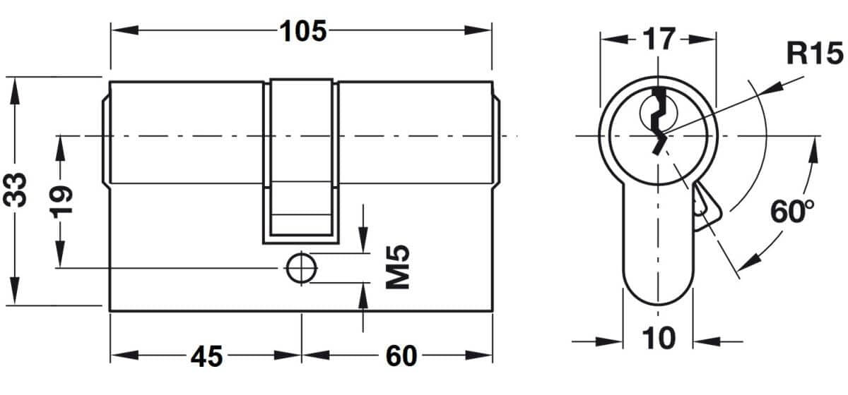 Con el cilindro doble Häfele PREMIUM puede confiar en una seguridad y calidad de primera clase para su hogar. Este cilindro de cierre de alta calidad fabricado en latón con perfil estándar ofrece una solución fiable para sus necesidades de seguridad y mide 33 mm de altura, lo que permite un ajuste y una aplicación óptimos en distintos tipos de puertas.