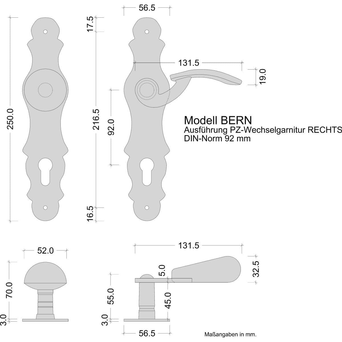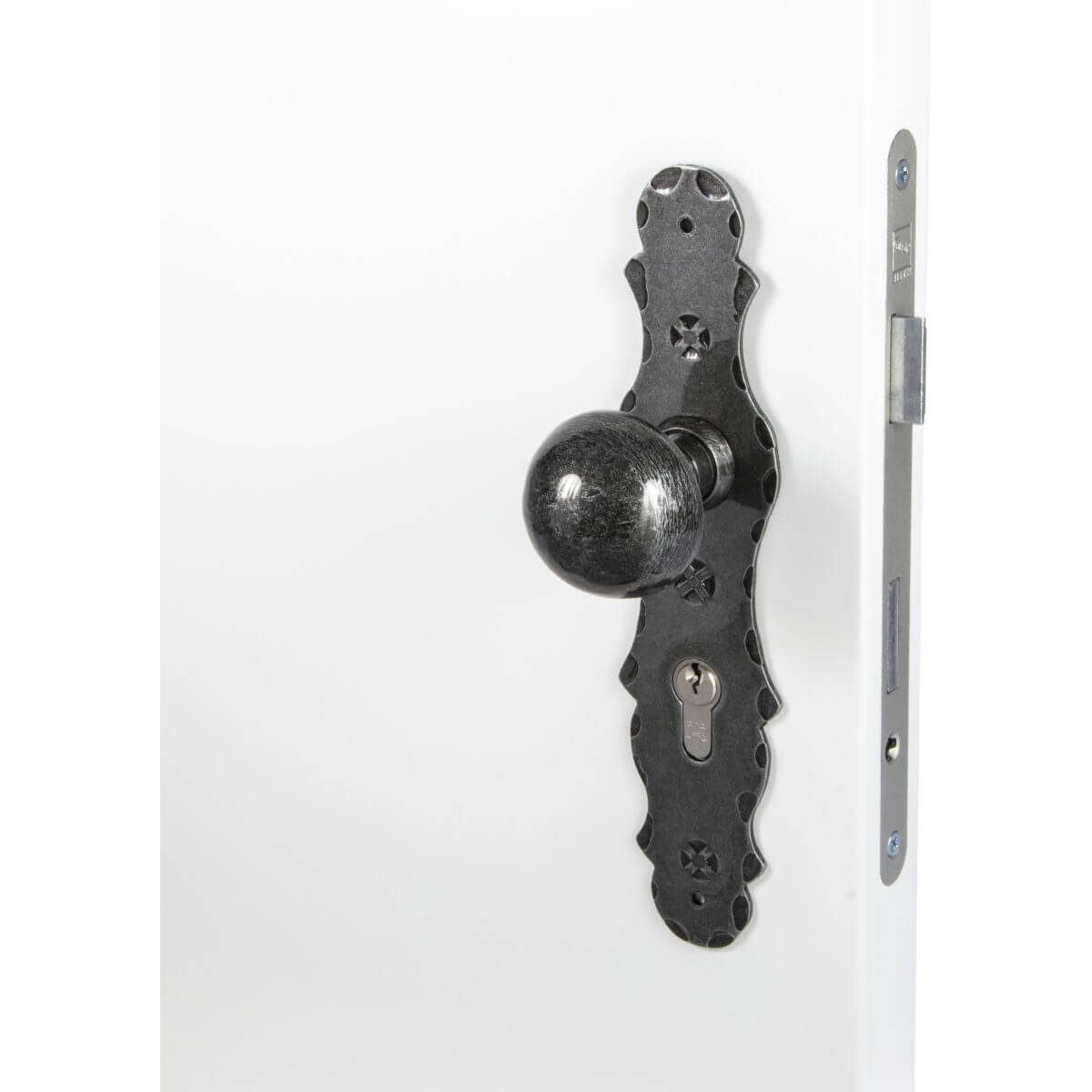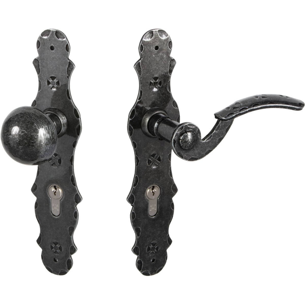 Herraje de puerta Lienbacher, hierro forjado antiguo, juego intercambiable PZ 92 mm Juego de escudos largos BERN, PZ 92 Derecha
