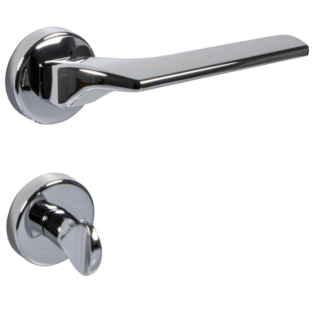 Juego de manillas de puerta de alta calidad CORSA de Fimet, hecho de acero inoxidable macizo que no se oxida, con rosetas redondas de plástico reforzado con fibra de vidrio para una vida útil especialmente larga. El juego de manillas de roseta recubierta en negro con un diseño italiano de moda, combina perfectamente con puertas interiores de diferentes tipos de madera y resalta su forma excepcional. Un atractivo juego de manillas retro para puertas interiores, puertas laterales y puertas de habitaciones de madera, con un soporte fijo-giratorio y resorte de retorno.