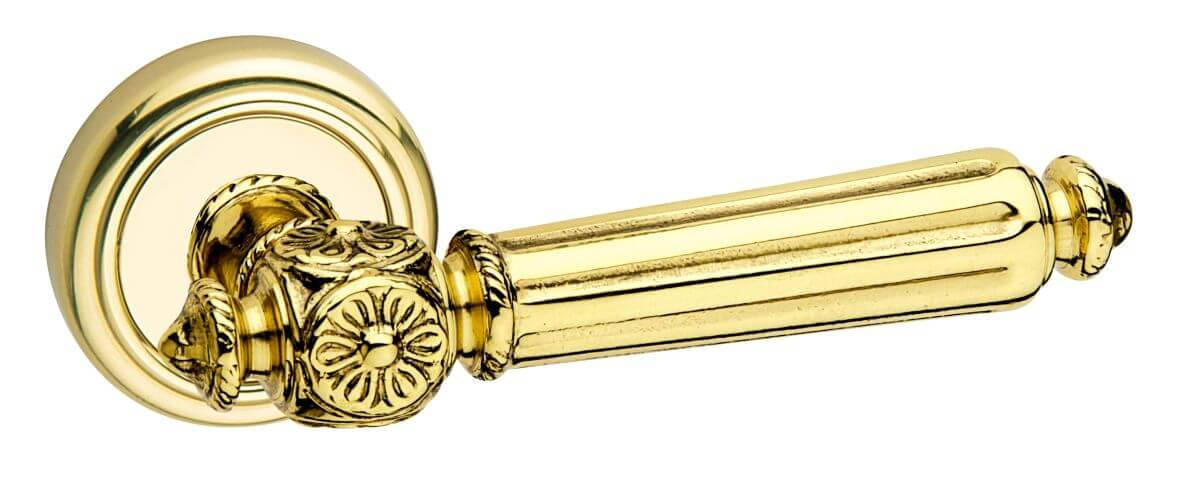 Atractiva combinación de rosetas vintage Fimet WIEN 109 en latón con un acabado antiguo de alta calidad. Manillas de puerta de estilo retro que se adaptan a estilos como el rústico, barroco, romántico o las tendencias modernas. Par de manillas de alta calidad en rosetas redondas con cubierta metálica para atornillar.