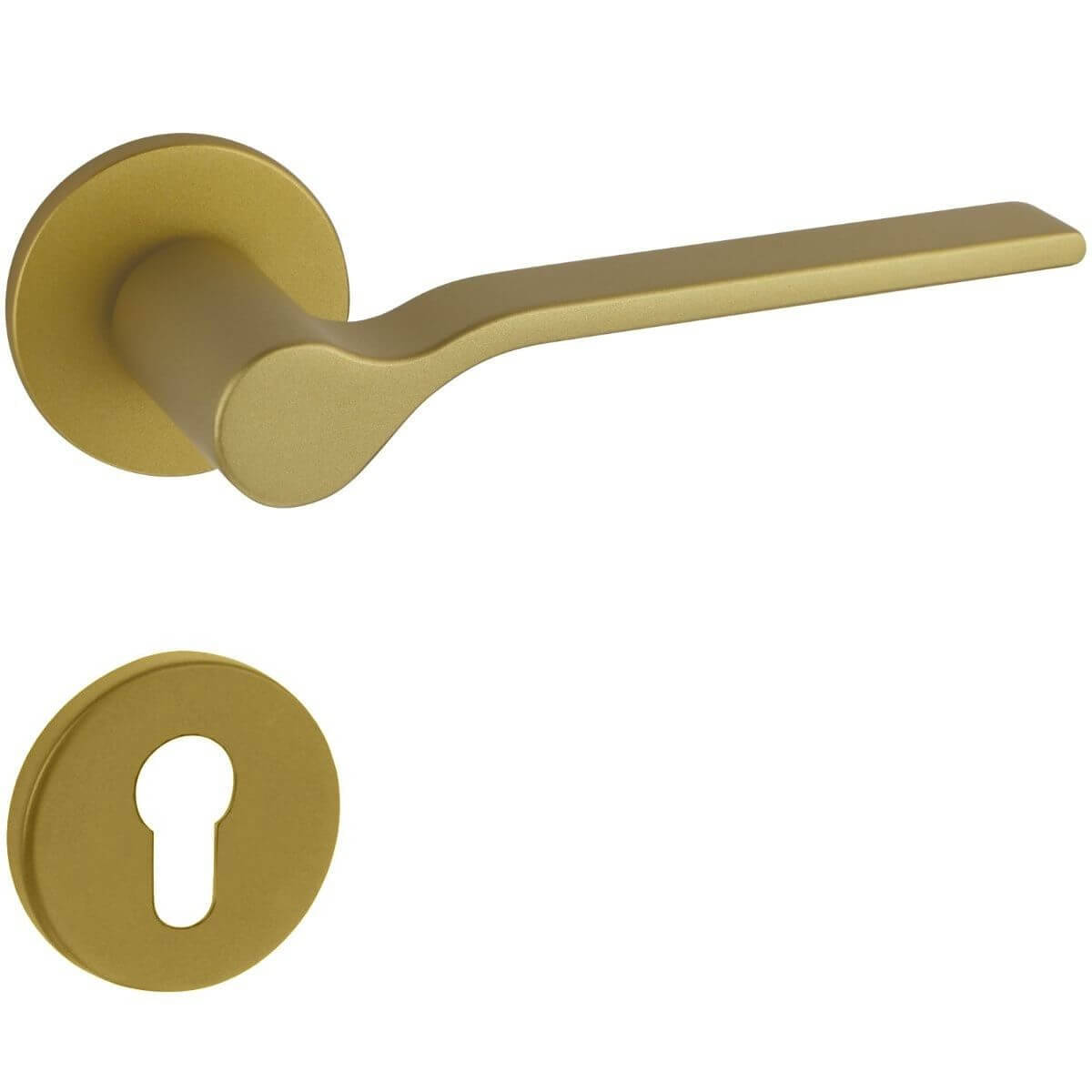 El diseño sigue una línea clara y minimalista: una base suavemente curvada se funde a la perfección con una palanca plana y rectangular, creando así una silueta ergonómica que se adapta perfectamente a la mano. La roseta redonda se integra armoniosamente en el conjunto y proporciona una conexión visualmente equilibrada con la puerta. Gracias a los reflejos luminosos y uniformes, el diseño parece tridimensional y delicado al mismo tiempo, lo que resalta especialmente el lenguaje formal moderno.