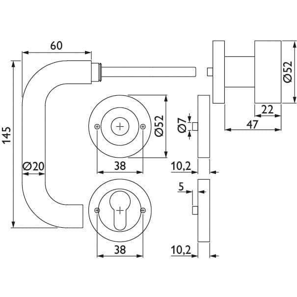 Otro aspecto destacado de esta manilla es el muelle de retorno integrado, que garantiza que la manilla vuelva siempre a su posición original. Esto no sólo contribuye a una mayor funcionalidad, sino también a la estabilidad a largo plazo del producto. La manilla de palanca es adecuada para puertas con un grosor de 38 a 45 mm y se suministra con el material de fijación adecuado, lo que hace que la instalación sea rápida y sencilla.