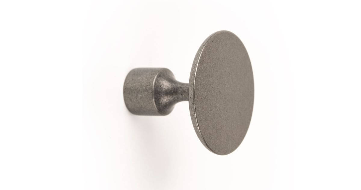 Bouton de porte de qualité supérieure et élégant modèle FLOID. Ce bouton rustique en fonte de zinc s'adapte parfaitement à tous les types de couloirs, vestiaires, chambres à coucher, dressings, salles de séjour, cuisines et bureaux, apportant une touche vintage élégante. Le bouton est caractérisé par sa forme ronde et son extrémité cylindrique, ce qui permet de le fixer discrètement et facilement aux meubles. Conçu par Frank Pearson, il est disponible en quatre finitions élégantes, ce qui lui permet d'être associé à des meubles de différentes teintes. Il fait partie de la collection Floid, qui comprend des poignées et des crochets de la même ligne de modèles. Idéal pour créer un environnement harmonieux. Matériau : fonte de zinc. Diamètre : Ø 34,8 mm / Profondeur : 30 mm.