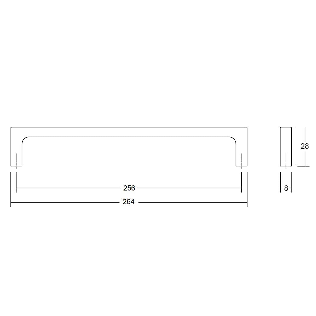 Poignée de meuble en métal PURA de profondeur, longueur 160 - 256 mm