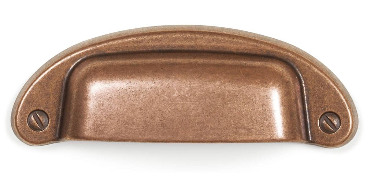 Poignée de meuble classique en forme de coupelle avec différentes finitions vintage pour une décoration intérieure rétro. Coquille de poignée idéale pour les meubles qui nécessitent une poignée avec du caractère. Diffuse une atmosphère charmante rappelant les temps passés.