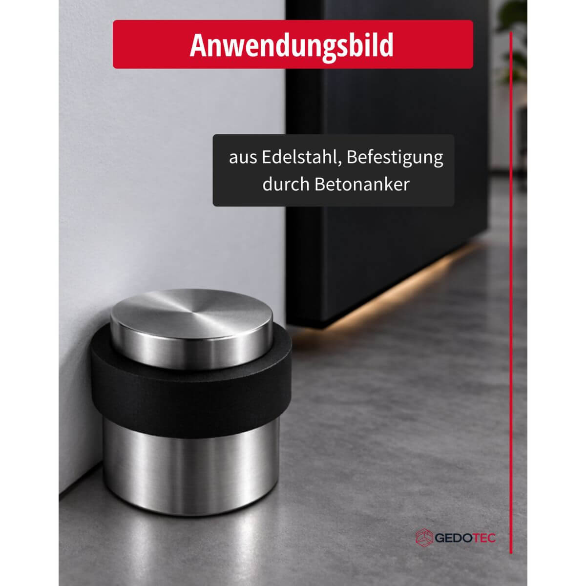 La fixation s'effectue à l'aide de vis et est complétée par un ancrage en béton massif qui assure une fixation absolument stable et durable dans le sol. Le butoir de porte est donc idéal non seulement pour les espaces privés, mais aussi pour les zones très fréquentées dans les immeubles de bureaux ou les établissements publics. Tout le matériel de fixation est inclus dans la livraison, ce qui permet un montage rapide et facile.