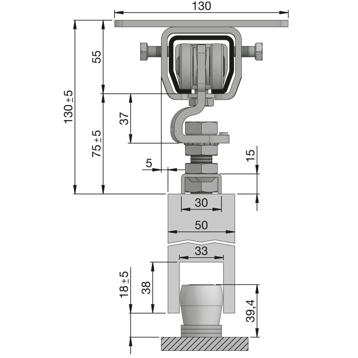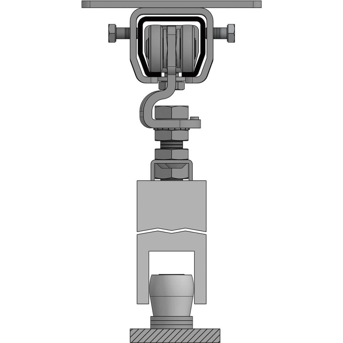 Kit de ferrures de porte coulissante Helm pour fixation au plafond 4000 mm Capacité de charge 200 - 400 kg
