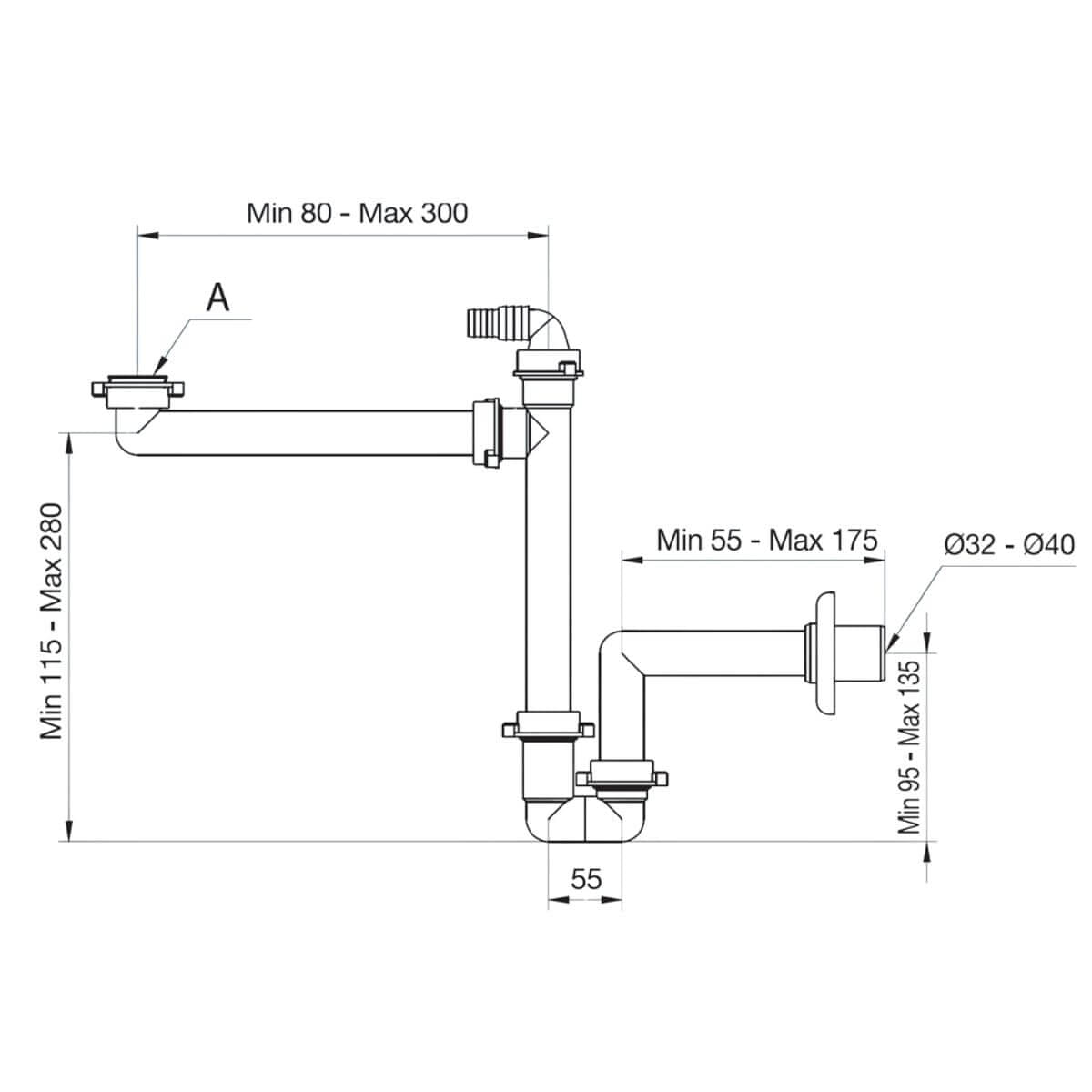 Die Montage gestaltet sich einfach und flexibel, da der Raumsparsiphon für Wandanschlüsse mit einem Durchmesser von 32 bis 40 mm geeignet ist. Dadurch passt er sich optimal an unterschiedliche Installationsgegebenheiten an und kann sowohl im Neubau als auch bei Renovierungen problemlos eingesetzt werden.