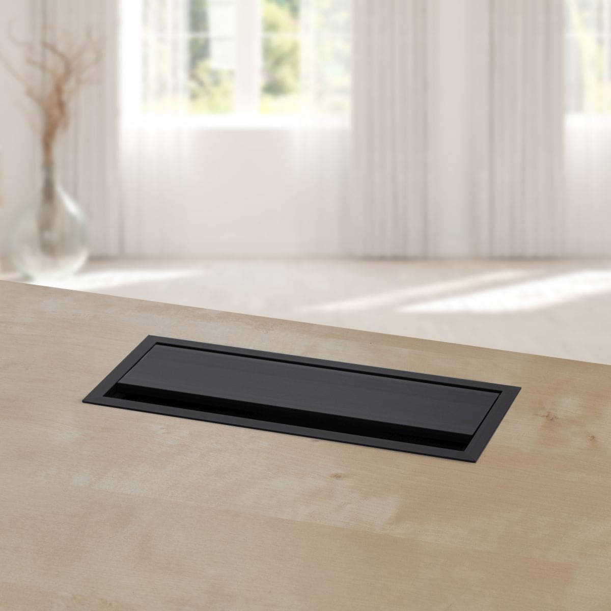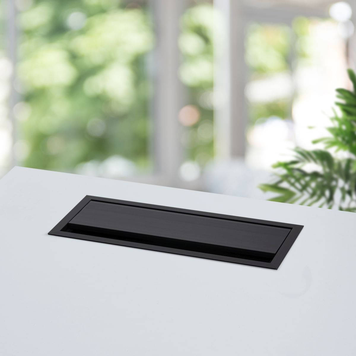Kabelmanager 2-teilig mit klappbarem Segment im Deckel für einfachen Zugriff und Bürstendichtung als Schutz vor Staub, Schmutz und Insekten. Kabelführung optimal geeignet für Schreibtische, Bürotische, Konferenztische, Büromöbel usw.