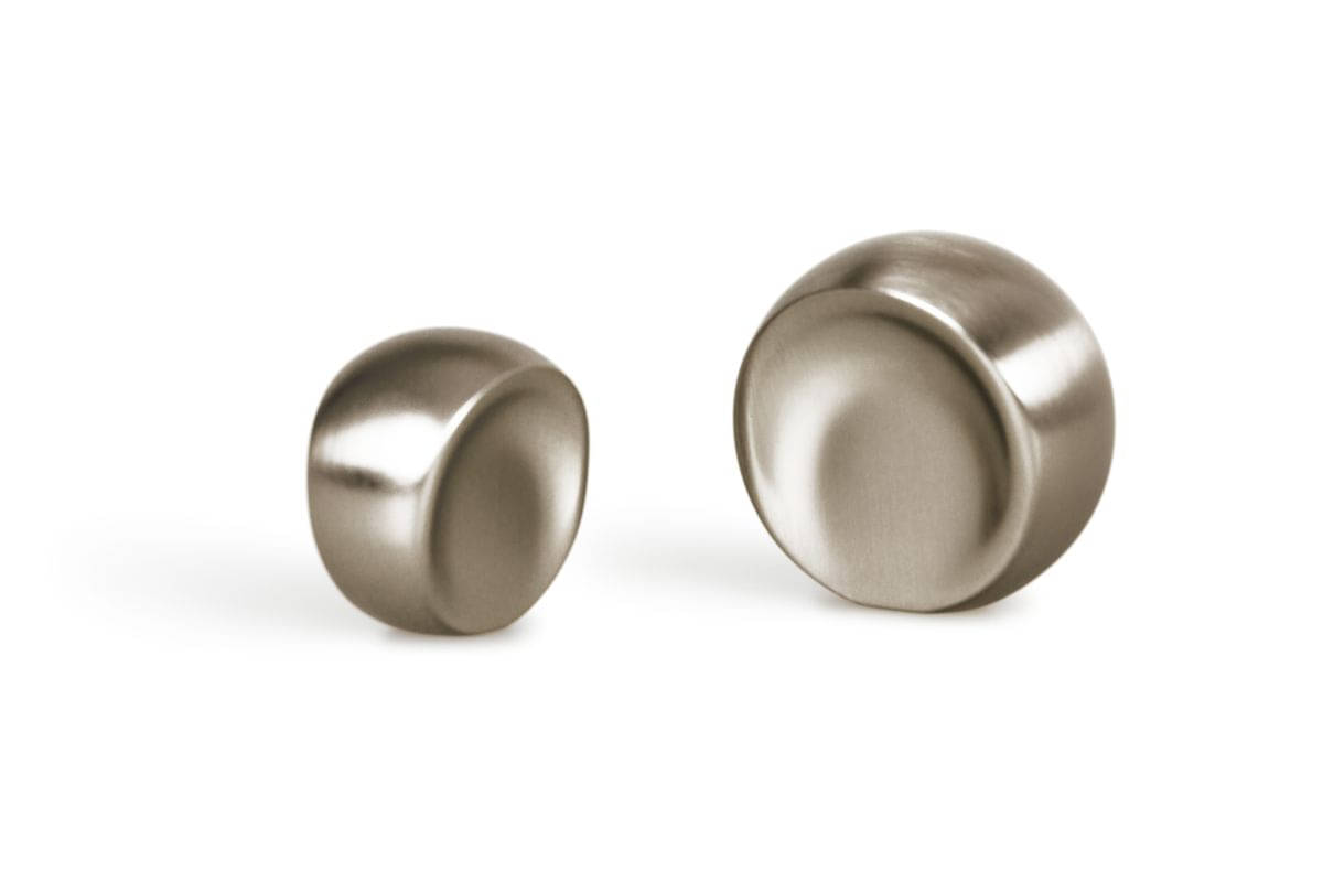 Kugelknöpfe sind klein und haben eine einzigartige versenkte, kugelförmige Form, die ihnen Charakter verleiht und sie ideal für alle Arten von Schränken und allgemeinen Möbelstücken macht. Ihr fast skulpturales Design ist zeitlos und passt perfekt zu verschiedenen Einrichtungsstilen, von klassisch bis futuristisch. Erhältlich in glänzendem Chrom, gebürstetem Nickel und gebürstetem Messing, letzteres mit einem ausgeprägten Vintage-Charakter.