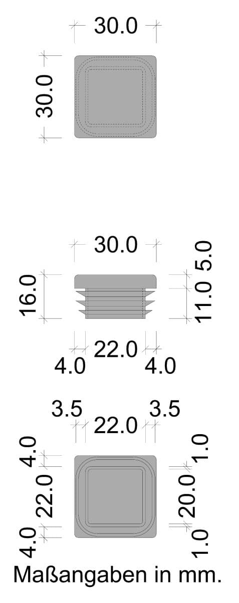 - 30 x 30 mm - Wandstärke: 1 - 2,5 mm