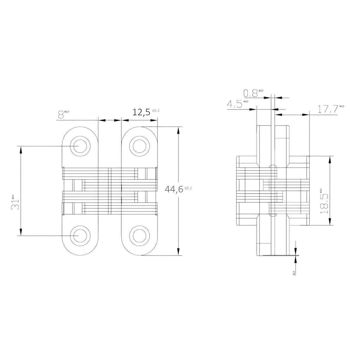 Siso Einbohrscharnier VICI mit Edelstahl-Arm und Schrauben