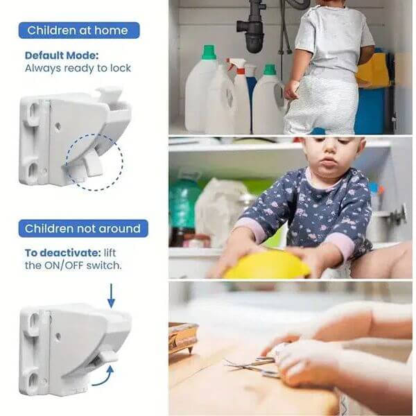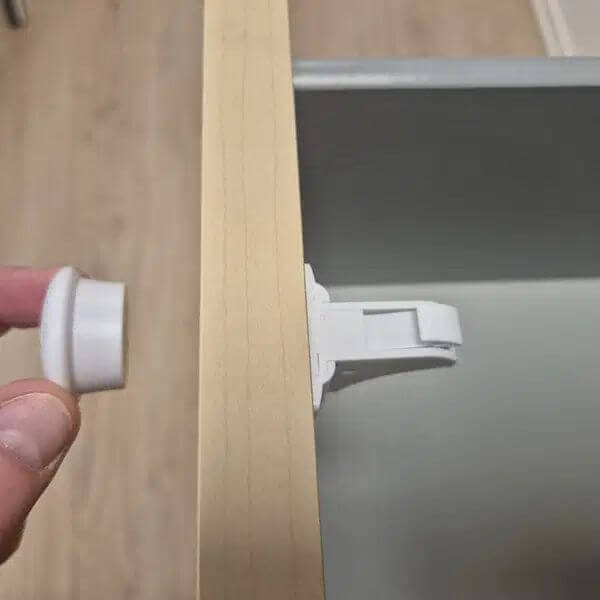 Ein weiterer Vorteil dieser Magnet-Kindersicherung ist ihre flexible Nutzung im Alltag. Über einen integrierten Kippschalter an der Unterseite des Schlosses kann die Sicherung bei Bedarf deaktiviert werden, ohne dass sie entfernt werden muss. So lässt sich der Schutz jederzeit schnell anpassen – ideal für Situationen, in denen keine Schutzfunktion erforderlich ist.