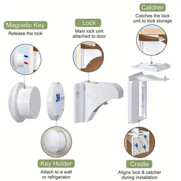 Die Magnet-Kindersicherung für Möbeltüren und Schubladen von Siso ist die ideale Lösung für alle Eltern, die ihr Zuhause sicher und gleichzeitig stilvoll gestalten möchten. Dieses durchdachte Set besteht aus vier hochwertigen Magnet-Schlössern sowie einem passenden Magnetschlüssel und sorgt dafür, dass neugierige Kinderhände keinen Zugriff auf gefährliche Inhalte wie Reinigungsmittel, Chemikalien oder andere riskante Substanzen erhalten.