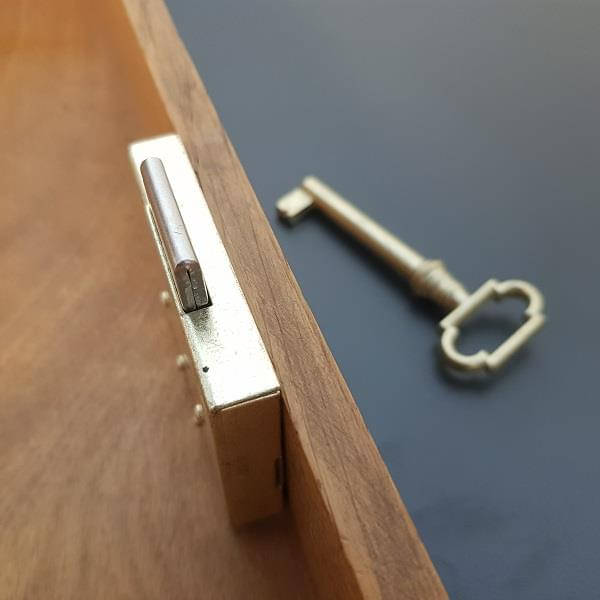 Das Schloss verfügt über eine Fallenwechsel-Funktion, eine weitere Umdrehung nach dem Abschließen wirft die Falle aus. Auf dem gleichen Wege kann diese oder eine andere auch wieder eingesetzt werden.