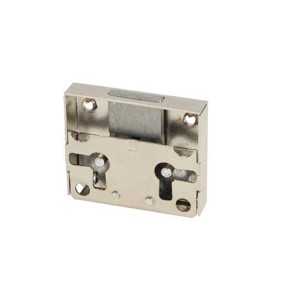 Hochwertiges Kastenschloss aus Stahl mit genormter EURO-Sperre zur Verwendung mit verschiedensten Möbelschlüsseln. Praktisches Riegelschloss links & rechts verwendbar zum einfachen Abschließen von Schränken, Möbel-Kästen, Schubladen, Kredenzen oder Schreibtischkästen.
