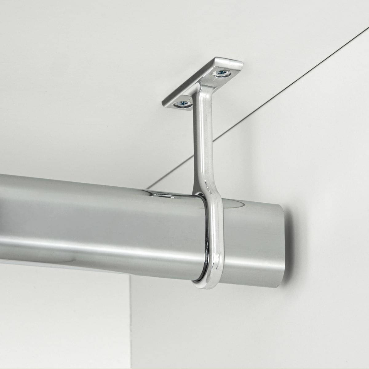 Hochwertiger Gedotec Schrankrohr-Mittelträger TUBES starr für die Deckenmontage von ovalen Schrankrohren 30 x 15 mm. Schnelle und einfache Montage zum Schrauben unter den Fachboden oder direkt an die Decke mit Spanplattenschrauben Senkkopf 3,5 mm. Offene Ausführung als Mittelträger für diverse ovale Kleiderstangen und Garderobenstangen.