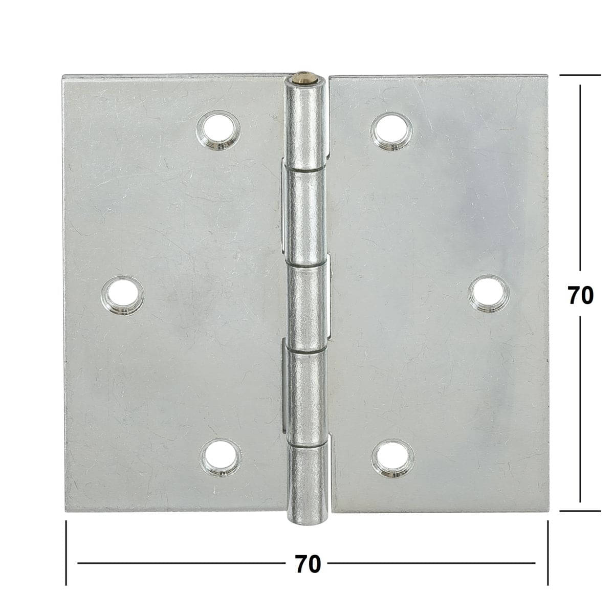 - 70 x 70 mm - materiaaldikte: 1,4 mm - aantal gaten: 6 - schroeven ∅: 3,5 mm