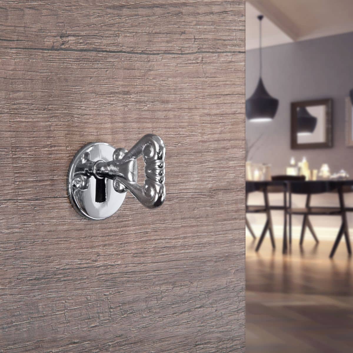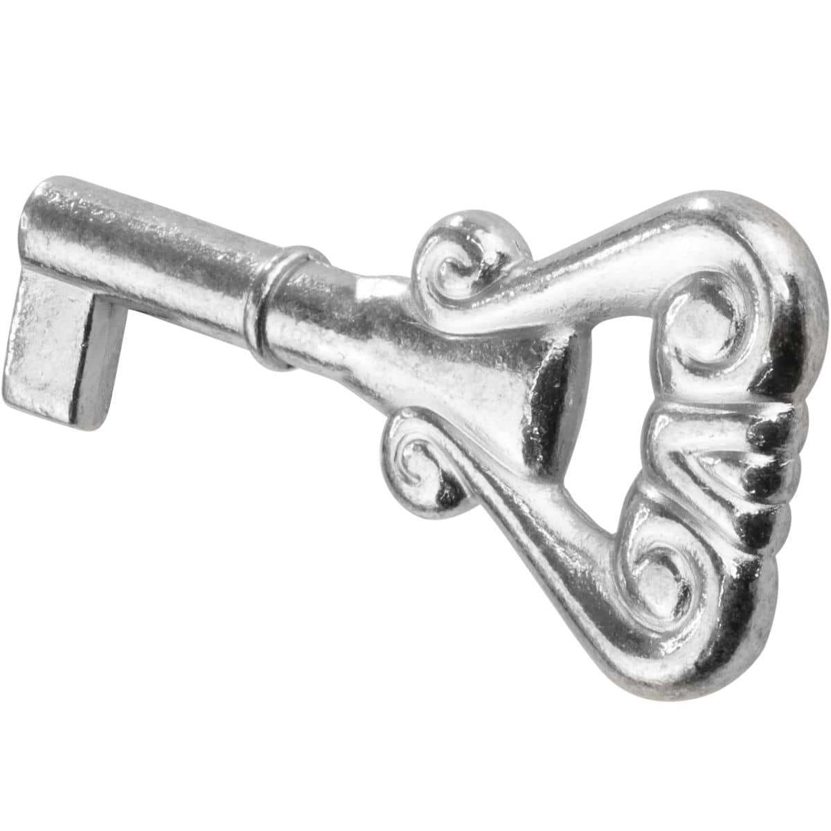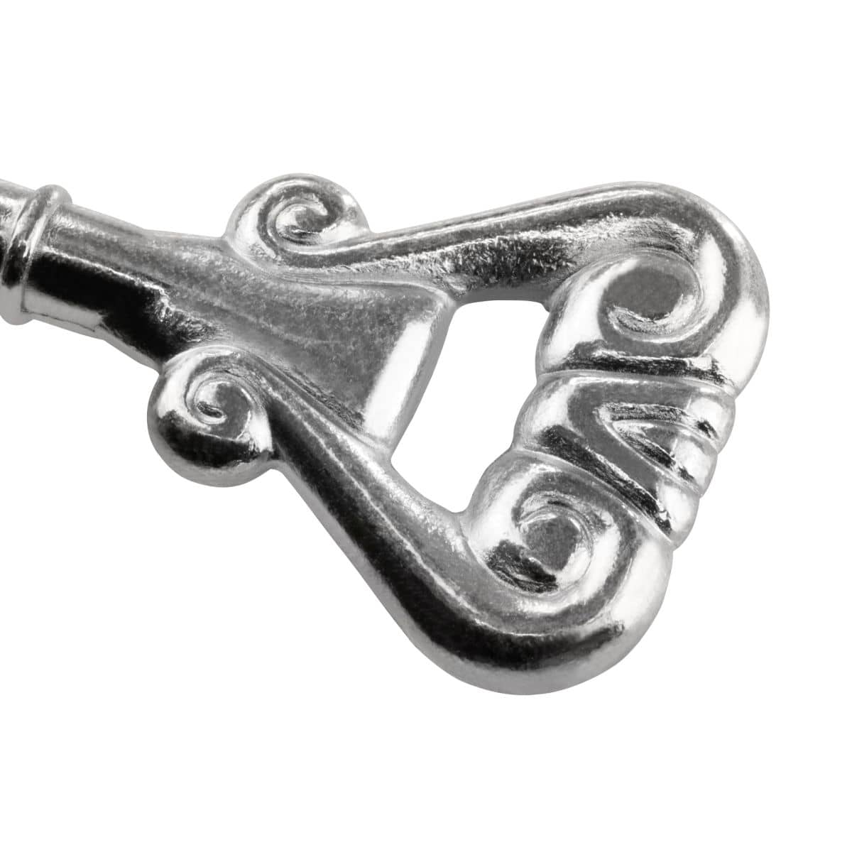 Elegancki mini dekoracyjny klucz meblowy Siso BRAHMS wykonany z metalu o długości trzonka 18 mm. Klucz meblowy standaryzowany, pasujący do wszystkich zamków meblowych, nakręcanych zamków lub zamków z drążkiem z blokadą EURO. Klucz w stylu vintage, idealny do starych i nowych mebli w antycznym, retro i wiejskim stylu, a także do mebli barokowych i secesyjnych.