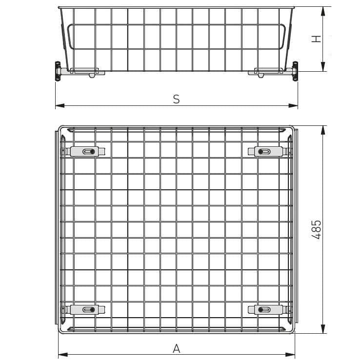 Gedotec Gitterauszugkorb CLASSIC aus Stahl weiß Tiefe 485 mm inkl. Auszugschiene, Höhe 100 mm für Korpusbreite 300 mm