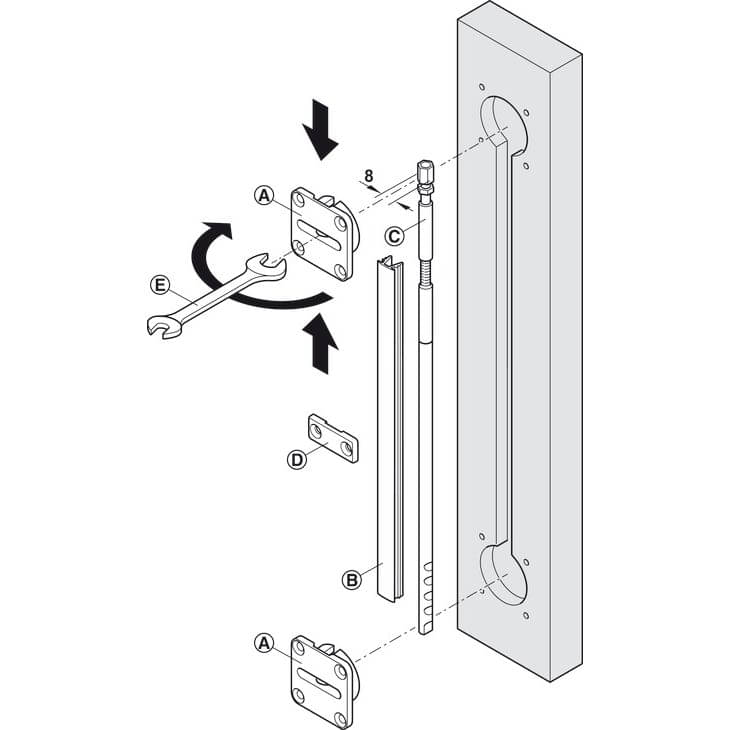 Die Verarbeitung des EASYPLAN setzt auf hochwertige Materialien, darunter eine stabile Gewindestange aus Stahl, die für die präzise Ausrichtung verantwortlich ist. Der Beschlag wird zum Einlassen und Verschrauben montiert und ermöglicht eine komfortable Einstellung über den oberen Topf, der mithilfe einer vormontierten Sechskantmutter und einem SW8-Gabelschlüssel feinjustiert werden kann. Für optimale Ergebnisse empfiehlt Häfele den Einsatz von zwei Ausrichtbeschlägen pro Türflügel, um eine gleichmäßige Stabilität sicherzustellen. EASYPLAN ist ausschließlich für Holztüren geeignet und sollte nicht in Hartholz verbaut werden. Beim Einsatz in Kombination mit lackierten Platten ist zu beachten, dass sich Fräsungen auf der Vorderseite sichtbar abzeichnen können.