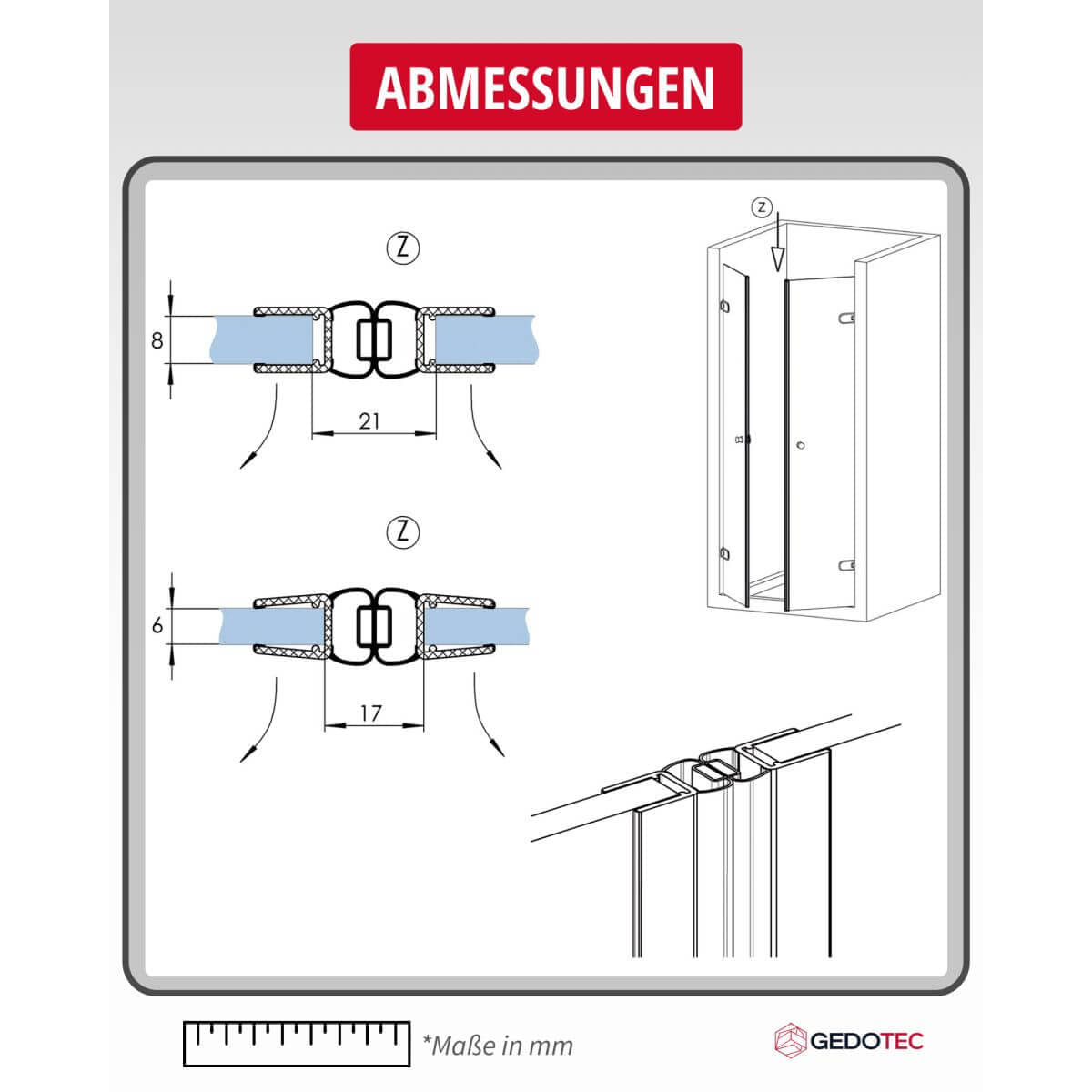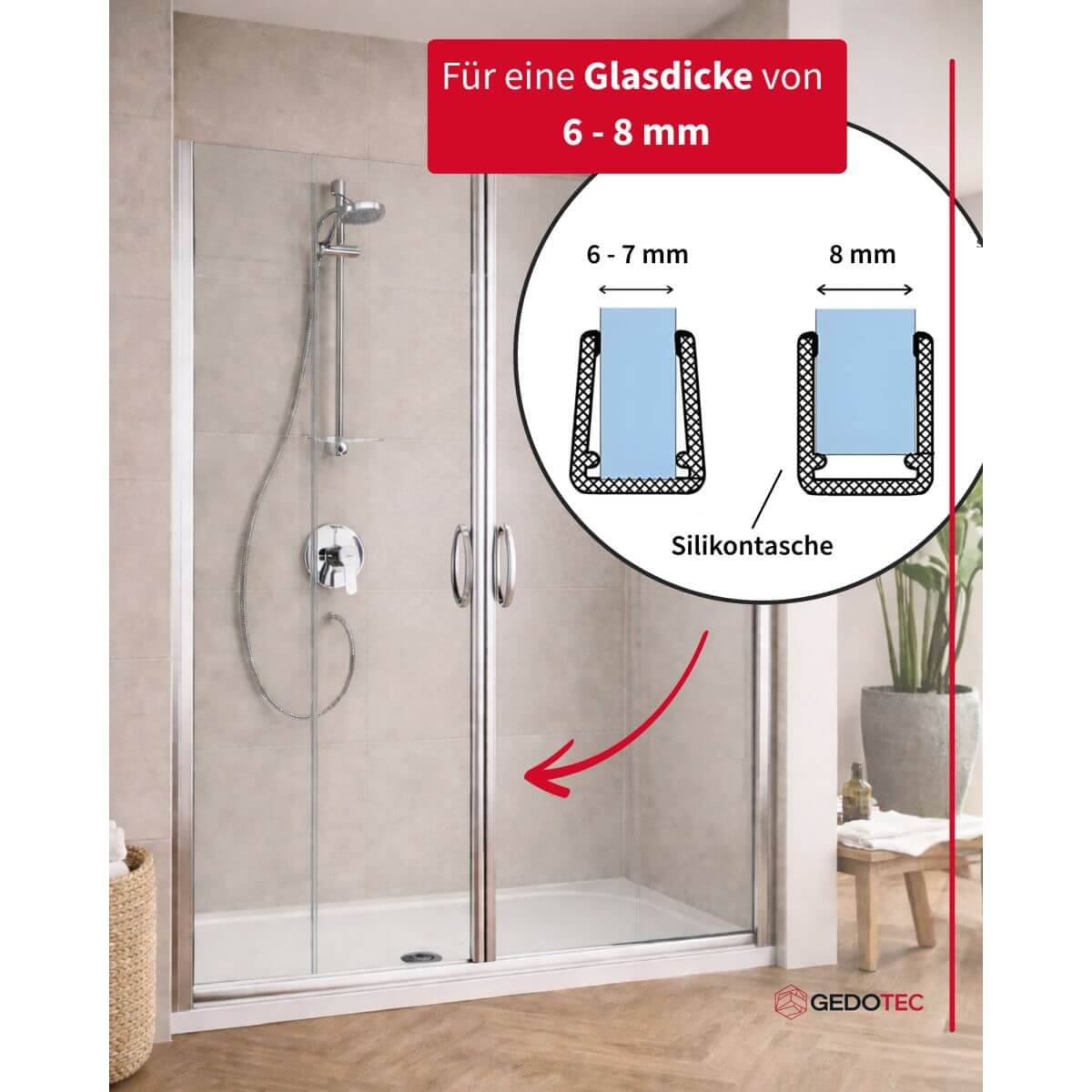 - Speziell entwickelt für verschiedene Duschtrennwandsysteme
