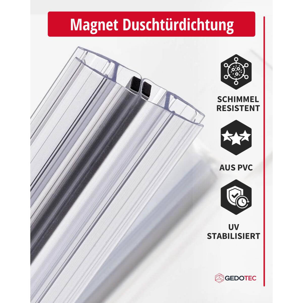 Diese Magnetduschdichtung überzeugt durch ihre außergewöhnliche Robustheit: Sie ist bruchfest, schimmelbeständig, kalkresistent und UV-stabilisiert, sodass sie selbst unter hoher Beanspruchung über Jahre hinweg zuverlässig funktioniert. Ob für den täglichen Gebrauch in Privathaushalten oder im anspruchsvollen Objektbereich – die Rehau 180° Magnetdichtung ohne Anschlag bietet dauerhafte Sicherheit, erstklassige Verarbeitung und eine einfache Montage. Vertrauen Sie auf eine Duschabdichtung, die Wasserschutz und Langlebigkeit vereint.