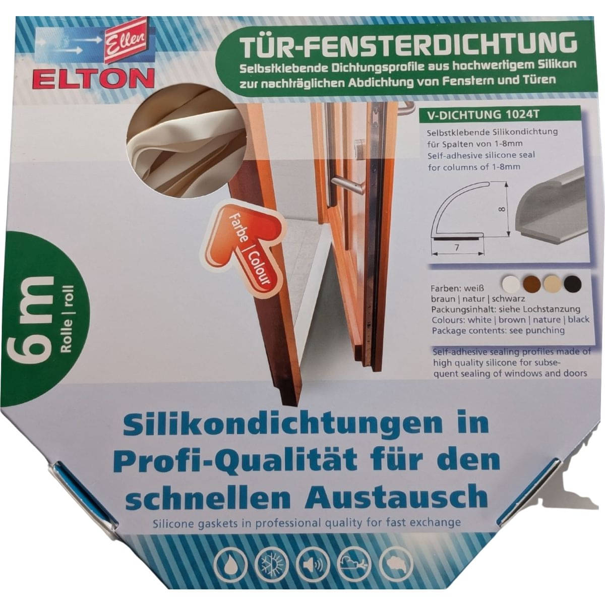 Entdecken Sie die hochwertige Flügelfalz-V-Dichtung 1024 von Ellen – die zuverlässige Lösung für undichte Türen und Fenster. Diese Dichtung aus langlebigem, wetterbeständigem Silikon überzeugt durch ihre extreme Flexibilität und passt sich Spalten von 1 bis 8 mm problemlos an. Dank der selbstklebenden Rückseite ist die Montage schnell, sauber und ohne zusätzliches Werkzeug erledigt – ideal für Heimwerker und Profis gleichermaßen.