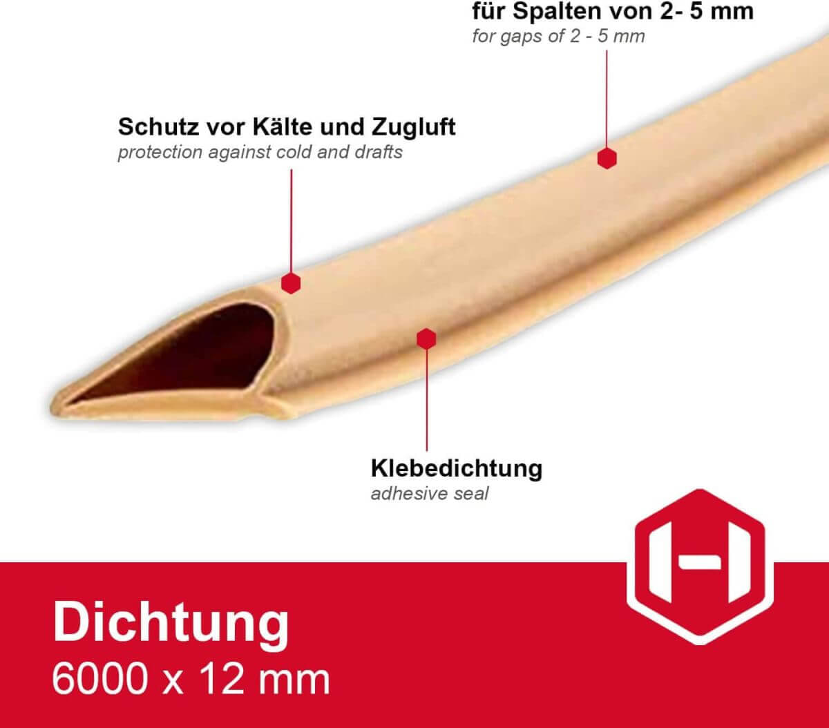 Häfele Dichtung zum Kleben für Fenster und Türen. Selbstklebende Türdichtung zum Renovieren, Austausch oder Ersatz. Universaldichtung mit extra starken, vormontierten Klebeband - für optimalen und langen Halt. Abdichtung für alte und neue Fenster und Türen -  zum Schutz von Zugluft, Kälte, Gerüche, Schall, Rauch, Dampf, Insekten, usw. Material: thermoplastisches Elastomer, Beige, weiß oder braun - Länge 6 Meter.
