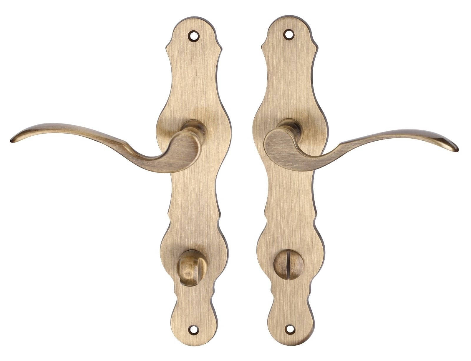 Hochwertige Fimet Langschild-Garnitur DUCK aus massivem Messing mit italienischer Trend Design Beschichtung in antik brüniert. Geschwungene Türgriffe im antiken Vintage-Stil verleihen jeder Türe das gewisse Etwas. Rostfreie Drückergarnitur in DIN-Norm 72 mm für Innentüren und Zimmertüren aus Holz. Türbeschlag fest-drehbar gelagert mit Rückholfeder.