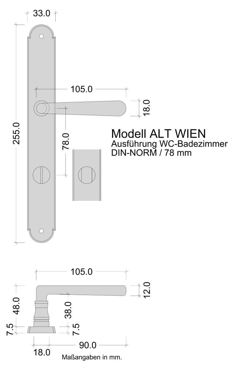 Fimet Langschildgarnitur ALT WIEN aus Messing DIN-Norm