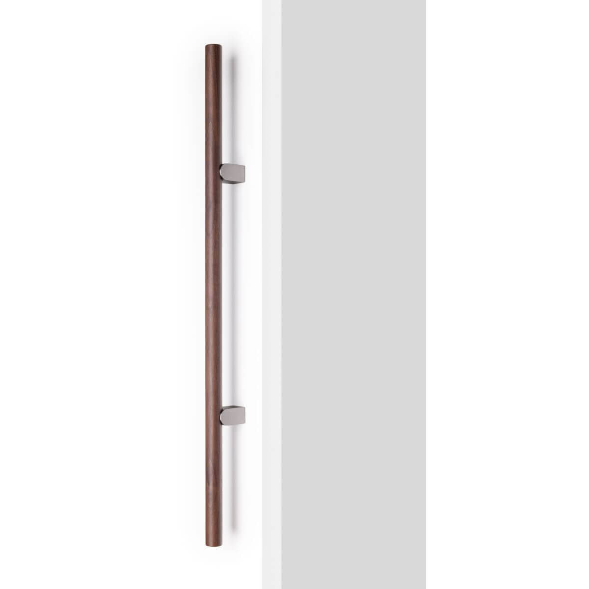 Viefe Stoßgriff KUMO WOOD BIG aus Holz & Aluminium, Nussbaum + Edelstahl-Optik - 320 mm - Beidseitig (1 Paar)