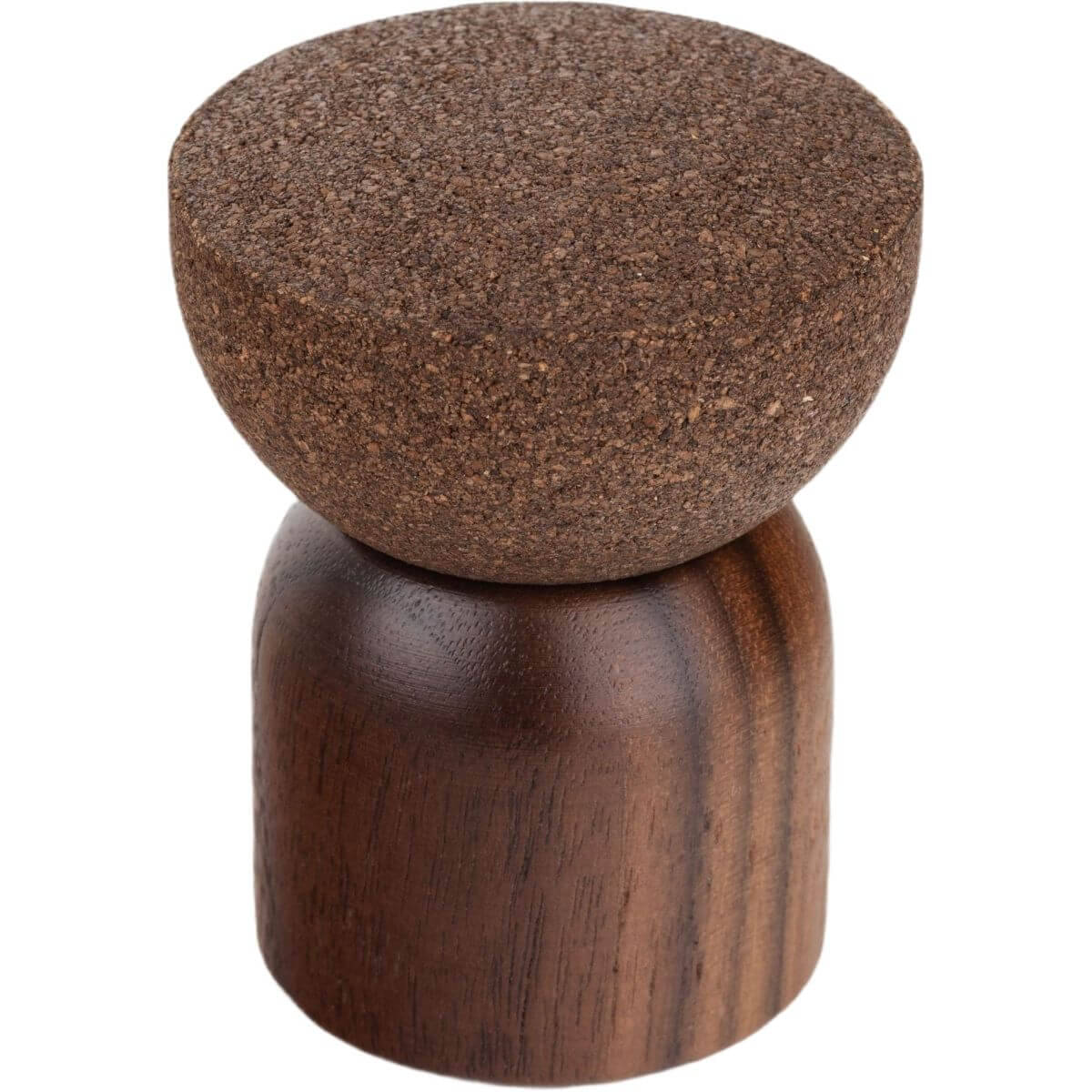 PIECE ist in zwei stilvollen Varianten erhältlich: eine Version mit Eichenfuß und Kopf aus recyceltem Kork sowie eine Ausführung mit Walnussholzfuß und dunkelbraunem Korkkopf. Die Kombination aus warmem Holz und sanftem Kork verleiht jedem Raum eine harmonische, einladende Atmosphäre und passt mühelos zu unterschiedlichen Einrichtungsstilen. Dank seiner kompakten Größe eignet sich der Türstopper besonders für Projekte, bei denen kleine Details große Wirkung entfalten sollen.